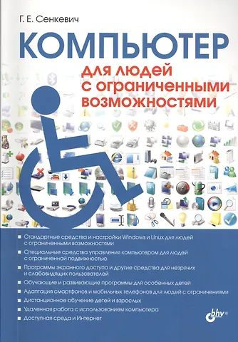 Первая в России книга, посвященная использованию компьютера людьми с ограниченными возможностями. Рассмотрены средства ввода для людей с ограниченной подвижностью, настройки системы и программ, облегчающие работу людям с ограничениями по зрению и слуху. Приводятся примеры и советы по самостоятельной адаптации компьютеров и мобильных устройств в различных ситуациях. Обсуждаются технические, правовые и практические аспекты дистанционного обучения и удаленной работы в российских условиях. Книга содержит полезные советы по применению интернет-технологий при покупках, расчетах и платежах, подборку ссылок на тематические ресурсы Интернета. Особое внимание уделяется устройствам, гаджетам и программ