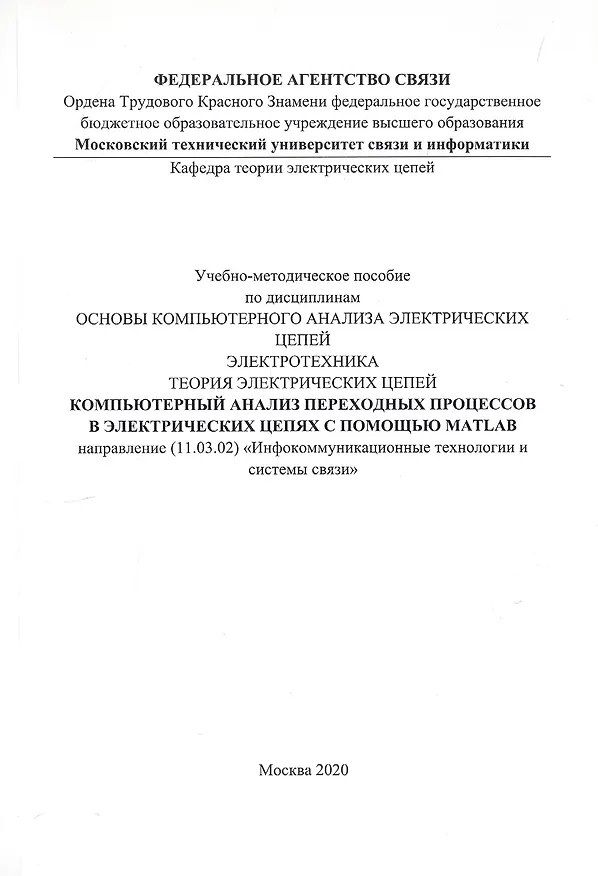 Компьютерный анализ переходных процессов в электрических цепях с помощью MATLAB. Учебно-методическое пособие