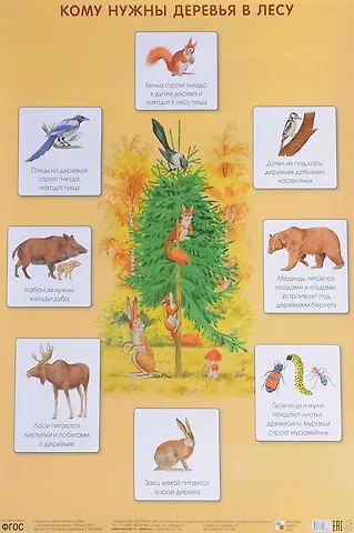 Плакат большого формата "Кому нужны деревья в лесу" издан в рамках учебно-методического комплекта к парциальной программе С.Н. Николаевой "Юный эколог". Плакат расскажет детям о том, как по-разному лесные обитатели используют деревья как среду обитания, благодаря чему они уживаются рядом друг с другом на одной территории. Великолепные красочные иллюстрации обязательно заинтересуют ребят и помогут легко усвоить новые знания.