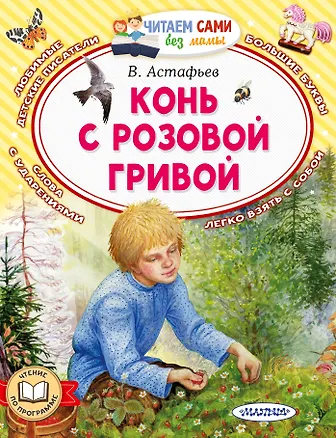 Книги серии «Читаем сами без мамы» — это уникальное собрание золотого фонда отечественной литературы! Сказки, стихи, рассказы с красочными иллюстрациями понравятся каждому малышу! Все произведения серии входят в обязательную программу по чтению, а крупный шрифт и ударения помогут ребёнку самостоятельно познакомиться с шедеврами детской мировой литературы. В этой книге юные читатели прочитают произведение В. Астафьева «Конь с розовой гривой». Вместе с героем истории ребята научатся быть честными, ответственными и добрыми. А красочные декорации таежной деревни на берегах реки Енисей помогут лучше понять прочитанное.