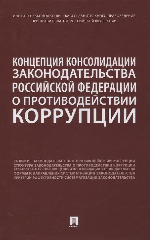 В пособии представлены концептуальные основания консолидации законодательства о противодействии коррупции в современной России. Исследование проведено на основе анализа российской правовой традиции с учетом доктринальных представлений и зарубежного опыта. Вопросы консолидации антикоррупционного законодательства рассмотрены в качестве целостной концепции, которая базируется на современных теоретических п