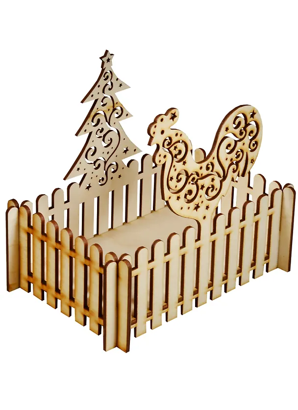 Конфетница Петушок и елка резная (186х126х170) (игрушка из дерева)