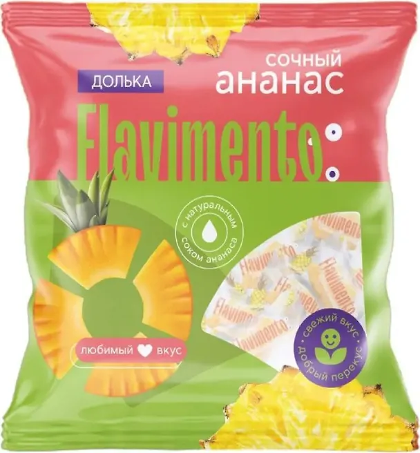Конфеты жевательные Flavimento Ананас (долька) с добавлением натурального сока, 100г.