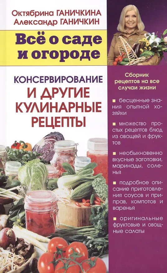 Можно приготовить разнообразные салаты и необыкновенно вкусные соусы, научиться правильно солить огурцы, квасить капусту и консервировать помидоры, варить изумительное по вкусу варенье, если следовать советам Октябрины Гапичкипой и готовить по се кулинарпым рецептам.
