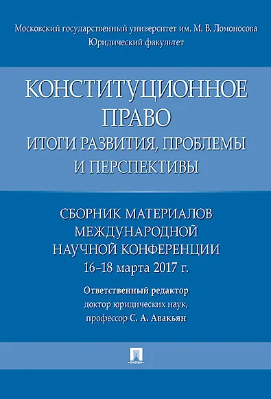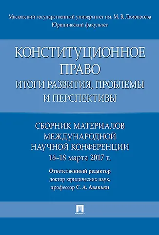 В настоящем сборнике объединены материалы участников международной научной конференции «Конституционное право: итоги развития, проблемы и перспективы», проведенной 16–18 марта 2017 г. на юридическом факультете МГУ им. М. В. Ломоносова по инициативе кафедры конституционного и муниципального права. Сборник предназначается для преподавателей, аспирантов, студентов магистратуры и бакалавриата юридических и других гуманитарных факультетов и вузов, а также для депутатов, практических работников органов государственной власти и местного самоуправления, широкой читательской аудитории.