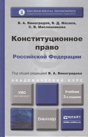 В третьем издании учебника вопросы современного конституционного права России раскрыты с учетом новейших положений науки и последних изменений Конституции РФ и законодательства России. Авторами представлены основы теории, базовые понятия и институты конституционного права России. Оригинальная методика выделения примеров, судебной практики, точек зрения, зарубежного опыта в виде отдельных рубрик, с одной стороны, делает учебник более доступным для восприятия и наглядным, с другой — позволяет пользователю дифференцированно подходить к объему изучаемого материала.