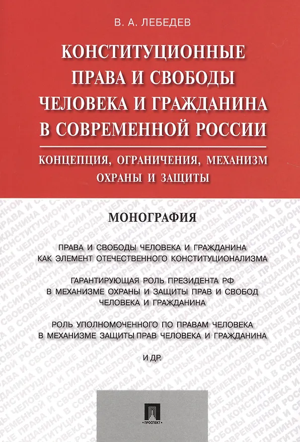 В монографии рассматриваются права и свободы человека и гражданина в Российской Федерации. Автор исследует права и свободы человека и гражданина как элемент отечественного конституционализма, становление и развитие концепции прав и свобод человека и гражданина, роль международно-правовых стандартов в ее формировании, особенности их конституционно-правового выражения, конституционные основы ограничения прав и свобод человека и гражданина, конституционно-правовой механизм их охраны и защиты в современной России. Законодательство приведено по состоянию на октябрь 2015 г. Издание адресовано как специалистам в области конституционного права, так и широкому кругу читателей, интересующихся проблема