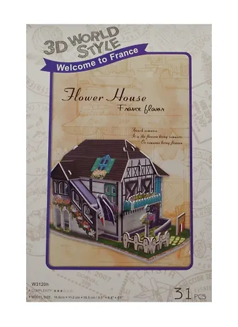 Конструктор 3D Здания Франция Flower House (W3120h) (11069002) (31 дет.) (16,5х11,2х10,5см) (3