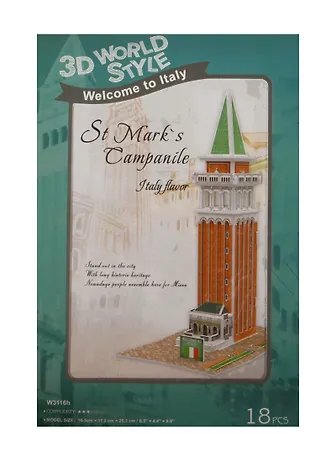 Конструктор 3D Здания Италия St. Mark`s Campanile (W3116h) (11069304) (18 дет.) (16,5х11,2х25,