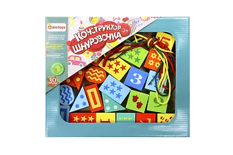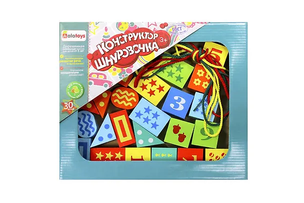 Конструктор, ALATOYS, Деревянный конструктор, Шнуровочка с цифрами, 30 деталей, 3 шнура