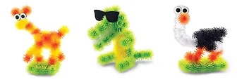 Набор «Страус»: 18 зеленых шариков Bunchems, 14 черных шариков Bunchems, 9 оранжевых шариков Bunchems, 9 белых шариков Bunchems, 1 аксессуар, инструкция.