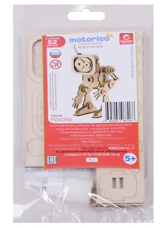 Набор рекомендован для детей от 5 лет. После сборки получается симпатичный робот, у которого опускаются и поднимаются руки, а голова двигается вверх-вниз.