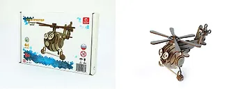 Вертолет подходит для самостоятельной сборки детям от 5 лет. У собранной модели вращаются лопасти, хвостовой винт и колеса.