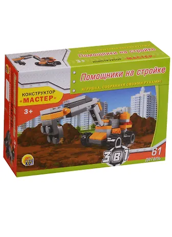 Конструктор Мастер Помощники на стройке (К-4728) (61 деталь) (3+) (коробка) (Рыжий кот)