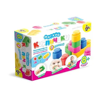 Конструктор "Мягкие кирпичики" 9 деталей для самых маленьких изготовлен из полимера, используемого для производства предметов гигиены и в пищевой промышленности. Кирпичики легко соединяются и разъединяются, при этом до определенной степени сминаются. Прекрасный тренажер для развития кисти рук, координации движений и развития пространственного мышления.