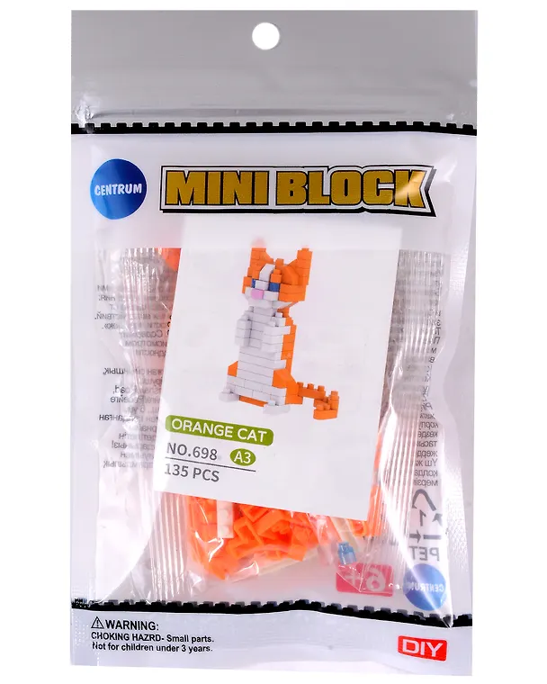 Отличный конструктор-кошка. В комплекте пластмассовые детали и цветная инструкция. Детали все качественные, скрепляются хорошо, крепко. Без запаха. Цвет соответствует. Инструкция четкая, понятная. Фигурка получилось в высоту примерно 5.5 см. Фигурка крепкая, не разваливается. Ребенку понравилось. К покупке рекомендую.
