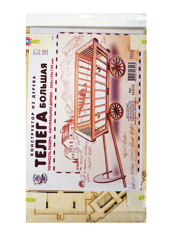 Конструктор Телега большая (141516) (500х150х130мм) (игрушка из натур. дерева)