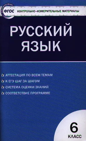 Содержащиеся в пособии контрольно-измерительные материалы (КИМы) соответствуют общим направлениям составления материалов ЕГЭ, программе по русскому языку для 6 класса и требованиям ФГОС. В конце пособия даны ответы на все варианты тестов, предложены диктанты различных типов и индивидуальные задания.