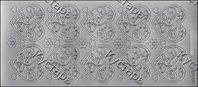 Контурные наклейки Маленькие орнаменты с сердцами (190001) (лист) (серебро) (10х23см)