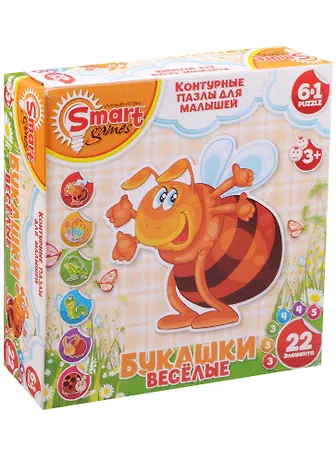 Контурные Пазлы (6в1) (52007) Веселые букашки (насекомые) (22эл) (коробка)
