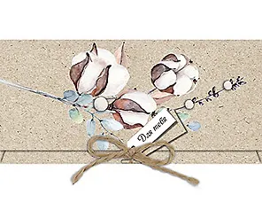 Накладные детали, конгрев, выборочный УФ-лак, джутовый шнур.
