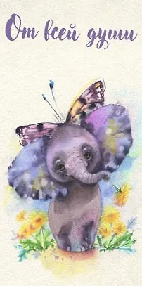 Конверт для денег «Слонёнок. От всей души» , 8,5*16,5см, картон