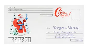 Конверт сразу же дарит праздничное настроение! Очень удобно, что адрес дедушки Мороза уже есть на конверте - не нужно его искать. Рисунок отлично подходит к концепции волшебного новогоднего письма.