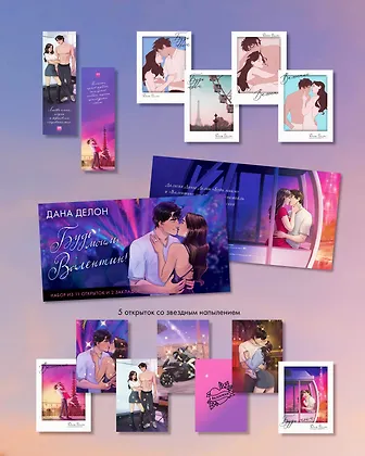 Лучшее дополнение к любимой истории — это набор с тематическим мерчом по ней! В этом конверте собраны красочные закладки и открытки из плотного картона. Мерч оформлен иллюстрациями из подарочного издания "Будь моим", "Валентин" и вдохновлен героями этой истории.