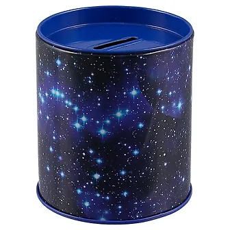 У этой копилки с принтом в виде сонма звёзд снимается крышка, так что вы легко сможете опустошить её и наполнить повторно.