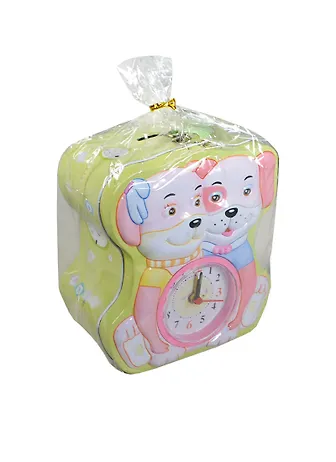 Копилка металлическая с часами-будильником Два щенка (S-98)