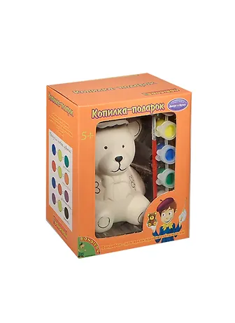 Набор представляет собой керамическую копилку в виде мишки, которую нужно раскрасить различными цветами так, как вам подскажет фантазия.