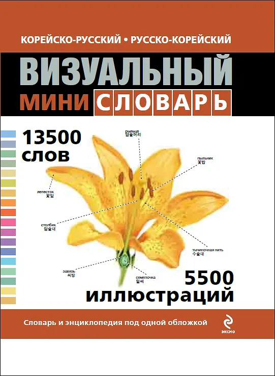 Корейско-русско русско-корейский визуальный мини-словарь. Удобный формат для запоминания слов, с помощью их визуализации. Как и в других словарях этой серии, дается картинка и само слово на русском и корейском языках.