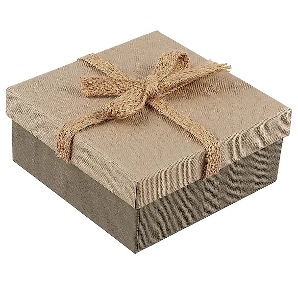 Коробку «Серый лён» украшает гармоничное сочетание сдержанных цветов и джутовая лента. Посмотрите, как красиво!