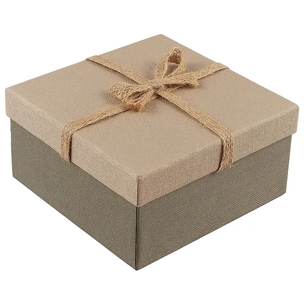 Коробку «Серый лён» украшает гармоничное сочетание сдержанных цветов и джутовая лента. Посмотрите, как красиво!