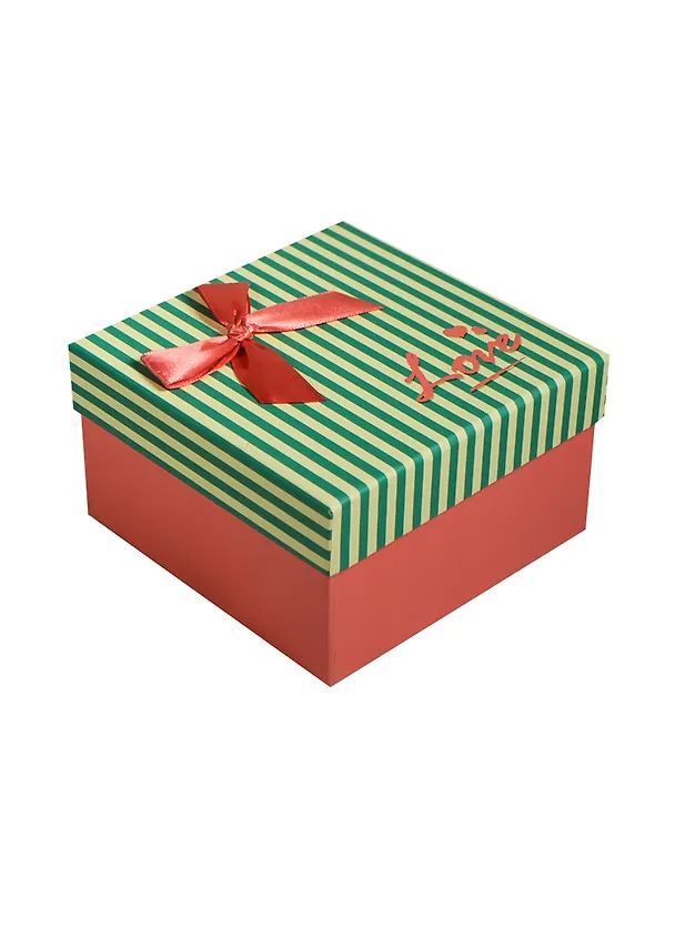 Коробка подарочная 11*11*6,5см, декор. бант, полоска, розовая, картон, Хансибэг