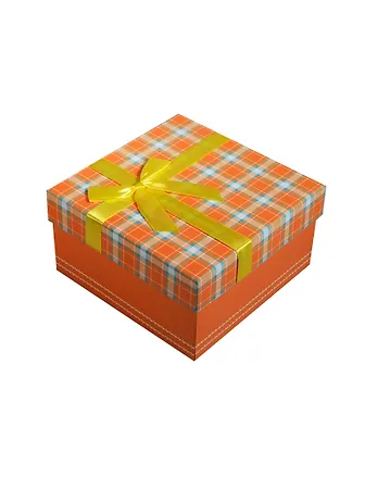 Коробка подарочная 15*14*7,5см, декор. бант, клетка, золото, картон, Хансибэг