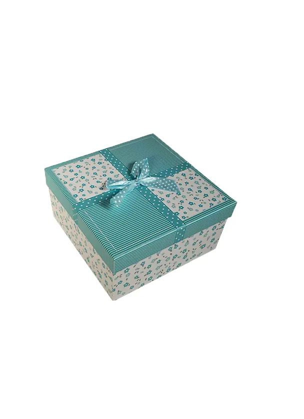 Коробка подарочная 18*18*8,4см, картон, декор.бант, зеленая, Хансибэг