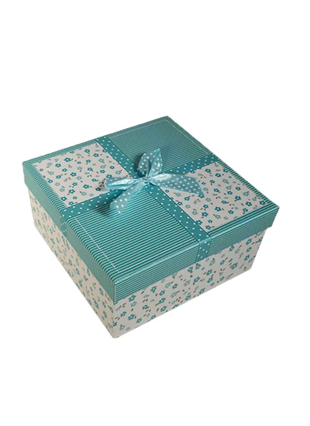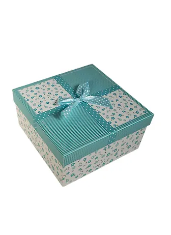 Коробка подарочная 20*20*9,5см, картон, декор.бант, зеленая, Хансибэг