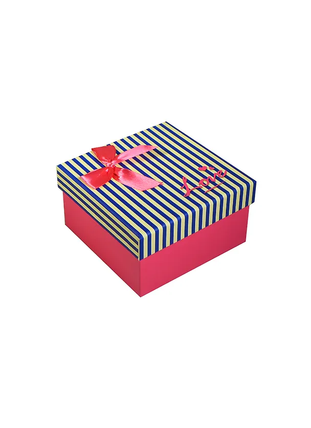 Коробка подарочная 9*9*5,5см, декор. бант, полоска, фуксия, картон, Хансибэг