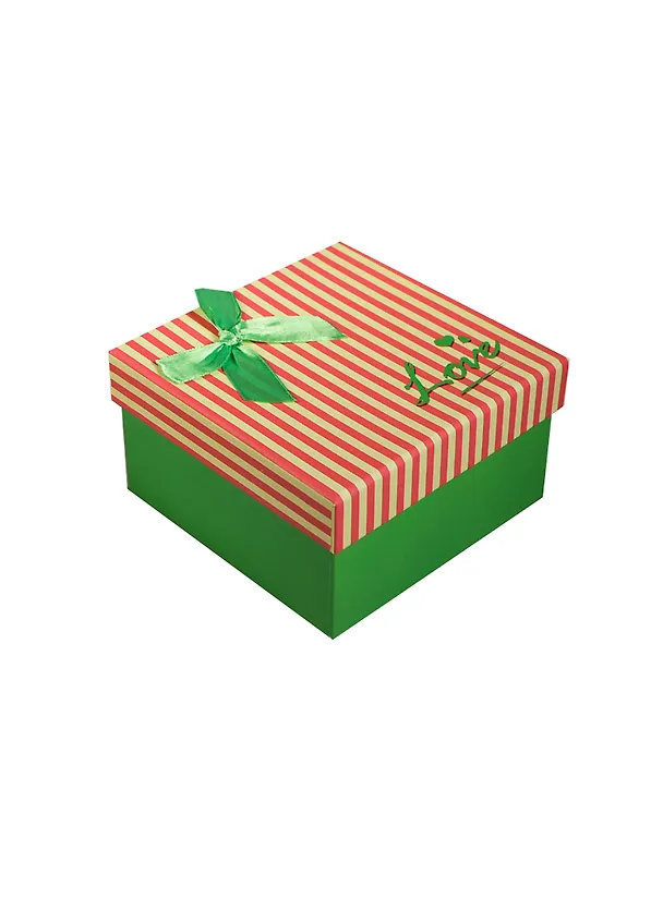 Коробка подарочная 9*9*5,5см, декор. бант, полоска, зеленая, картон, Хансибэг