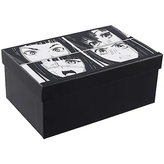 Сомневалась по поводу покупки из-за чёрного цвета – ведь вручать подарок, упакованный в чёрное, довольно странно. Однако, сомневалась зря. Коробка выглядит хоть и нестандартно, но совсем не мрачно. Наоборот, стильно и оригинально. Хороший картон, толстый, но при этом лёгкий, сверху обклеен приятной гладкой бумагой. Печать чёткая, рисунки интересные. Качество склейки хорошее, всё сделано ровно, аккуратно. Крышка надёжная, просто так не слетит, содержимое надёжно защищено. Внутри коробка обклеена белой бумагой с серым паттерном. Он не особо интересный, похож на узоры на обоях, но главное что не отталкивает и не смотрится совсем уж позорно. Но лучше бы просто обклеили внутреннюю часть однотонной чёрной или серой бумагой, мне кажется, смотрелось бы более эффектно, по-молодёжному.