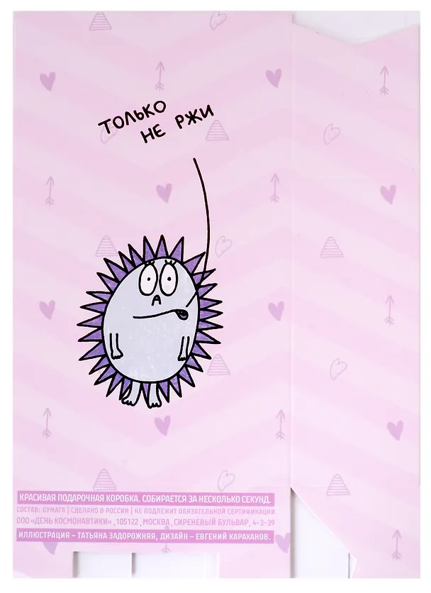 Универсальная подарочная коробочка, которая собирается за пару секунд и прячет за ироничным мессаджем самые главные подарки сезона. Персонаж от легендарной Татьяны Задорожней.