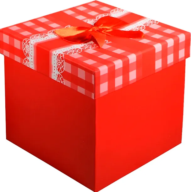Коробка подарочная "Бант на красной клетке" 16*16*16см