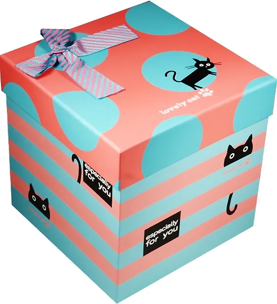 Коробка подарочная "Cat" розовая с голубым 14,5*14,5*14,5см