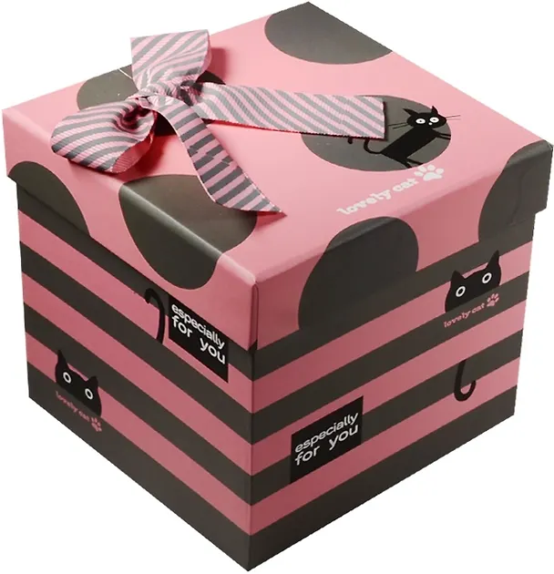 Коробка подарочная "Cat" розовая с серым 12,5*12,5*12,5см