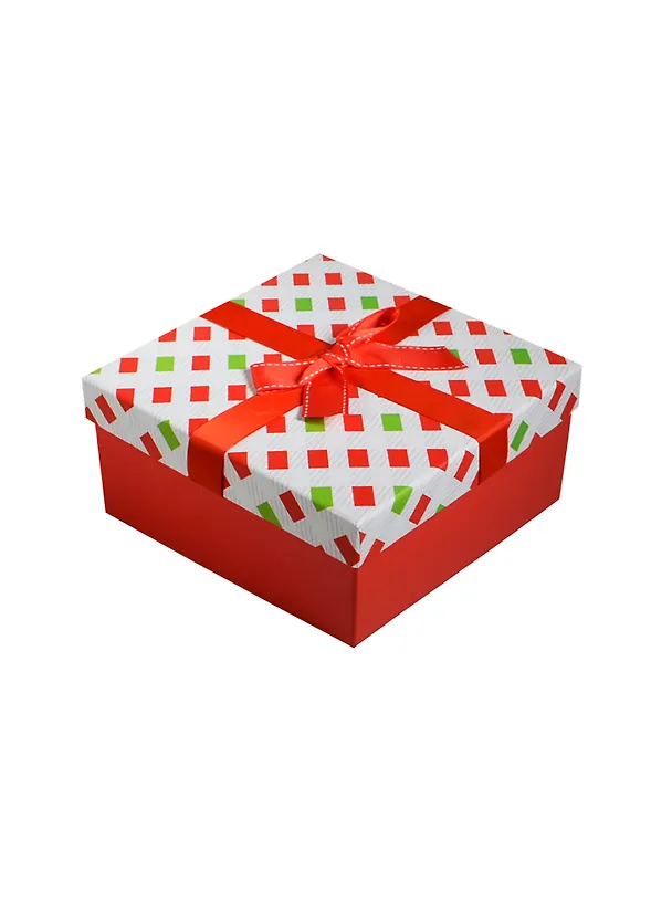 Коробка подарочная "Квадраты с красным" 15,5*15,5*7см, декор. бант, квадраты, красный, картон, Хансибэг