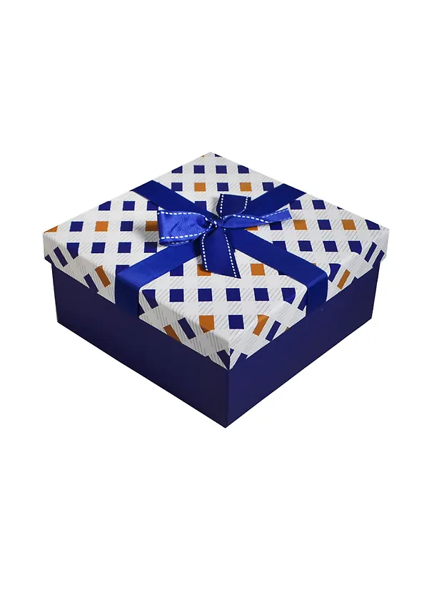 Коробка подарочная "Квадраты с синим" 18*18*8,5см, декор. бант, квадраты, синий, картон, Хансибэг