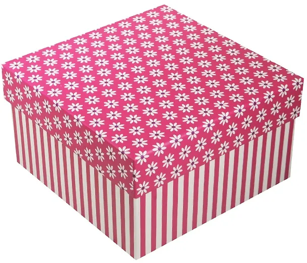 Коробка подарочная "Ромашки c полосками", фуксия 17*17*9.5см