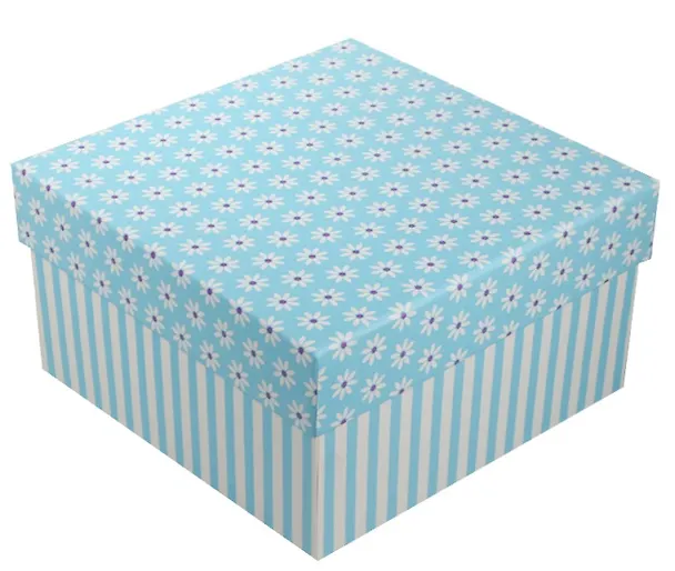 Коробка подарочная "Ромашки c полосками" голубая, 15*15*8.5см