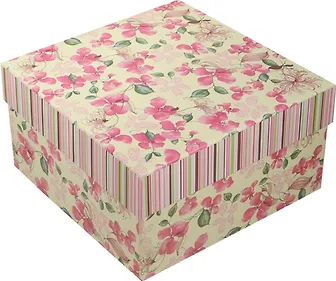 Коробка подарочная "Розовые цветы на белом" 13*13*7,5см